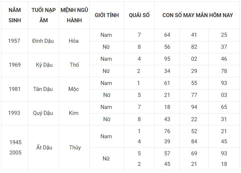 Tuổi Dậu trong 12 con giáp được đại diện cho sự năng động, nhiệt tình và kiêu hãnh. Bởi vậy người mang tuổi Dậu luôn yêu đời và có cuộc sống tràn đầy năng lượng. Có tinh thần trách nhiệm cao và tính tình ngay thẳng nên họ luôn được nhiều người yêu quý. Số may đại cát ứng với người tuổi gà sẽ được hé lộ ngay bên dưới.