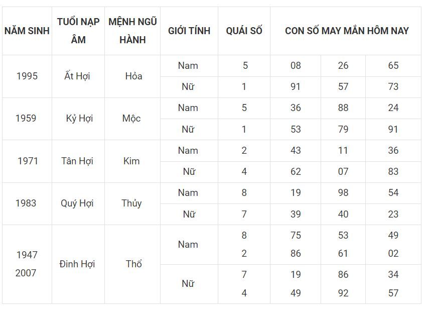 Tuổi Hợi đứng cuối cùng trong bảng xếp hạng 12 con giáp, là con vật hưởng được số an nhàn và hưởng phúc. Mang mệnh phú quý và an nhàn trong công việc. Luôn được quý nhân giúp đỡ, trên con đường quan trường thì người tuổi Hợi sẽ làm nên đại sự được mọi người yêu quý và kính nể. Em út trong 12 con giáp sẽ được bề trên ưu ái cho những con số may mắn hôm nay 11-4-2023 là gì.