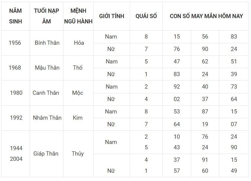 - Sinh năm Mậu Thân 1968 – Khỉ ăn quả (thuộc mệnh Thổ trong Ngũ hành).
