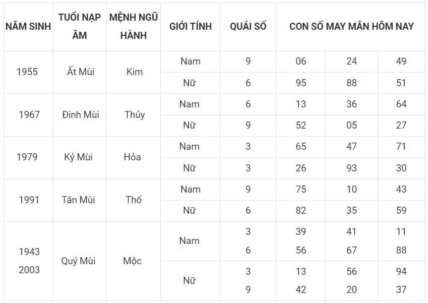 Tuổi Mùi – cầm tinh con dê trong 12 con Giáp được đánh giá là con vật đại diện cho người tốt bụng và nhân hậu. Họ có cuộc sống nhiều tình cảm, luôn sẵn sàng giúp đỡ mọi người xung quanh. Đặc biệt hơn, người tuổi Mùi rất thông minh với tài trí hơn người, họ có tài nhìn xa trông rộng và khả năng phân tích vấn đề rất nhạy bén. Cho dù là tuổi gì thì tất cả chúng ta cũng cần đến nhiều may mắn, cùng xem son số may mắn hôm nay 12-4-2023 của tuổi Mùi ứng với số nào?