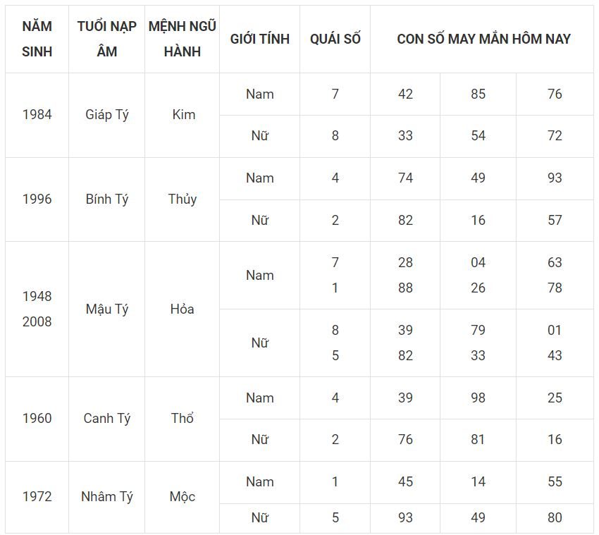 Người tuổi Tị – cầm tinh con rắn được mọi người nhận xét là người khéo léo, khôn ngoan và có tính hay mạo hiểm. Ngoài ra họ có tính giàu tình cảm và có cuộc sống nội tâm rất phong phú. Với tính lãng mạn và sự uyển chuyển người tuổi Tị luôn khiến mọi người bị thu hút. Bạn có đang tò mò số đẹp hôm nay của tuổi Tị hay không, cùng xem nhé!