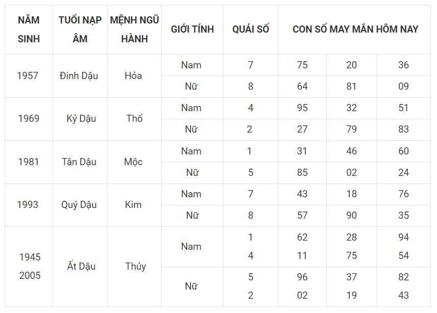 Tuổi Dậu trong 12 con giáp được đại diện cho sự năng động, nhiệt tình và kiêu hãnh. Bởi vậy người mang tuổi Dậu luôn yêu đời và có cuộc sống tràn đầy năng lượng. Có tinh thần trách nhiệm cao và tính tình ngay thẳng nên họ luôn được nhiều người yêu quý. Số may đại cát ứng với người tuổi gà sẽ được hé lộ ngay bên dưới.