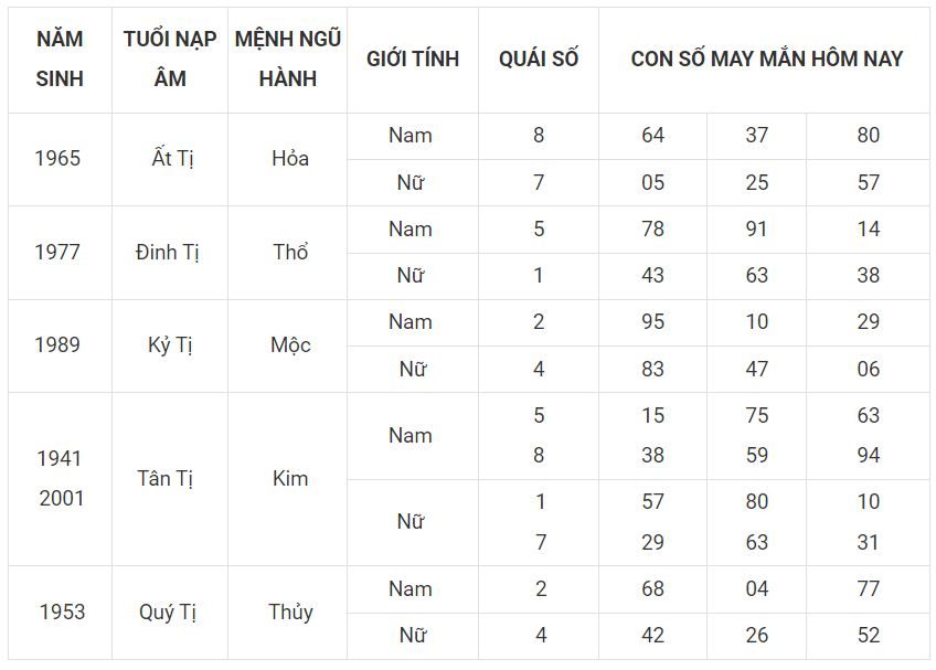 - Sinh năm Ất Tị 1965 – Rắn xuất hang (thuộc mệnh Hỏa trong ngũ hành).