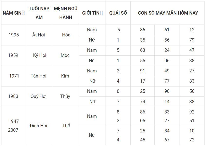 - Sinh năm Ất Hợi 1995 – Lợn quá vãn (thuộc mệnh Hỏa trong Ngũ hành).