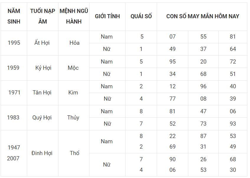 Tuổi Hợi đứng cuối cùng trong bảng xếp hạng 12 con giáp, là con vật hưởng được số an nhàn và hưởng phúc. Mang mệnh phú quý và an nhàn trong công việc. Luôn được quý nhân giúp đỡ, trên con đường quan trường thì người tuổi Hợi sẽ làm nên đại sự được mọi người yêu quý và kính nể. Em út trong 12 con giáp sẽ được bề trên ưu ái cho những con số may mắn hôm nay 29-3-2023 là gì.