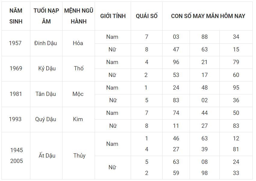 Tuổi Dậu trong 12 con giáp được đại diện cho sự năng động, nhiệt tình và kiêu hãnh. Bởi vậy người mang tuổi Dậu luôn yêu đời và có cuộc sống tràn đầy năng lượng. Có tinh thần trách nhiệm cao và tính tình ngay thẳng nên họ luôn được nhiều người yêu quý. Số may đại cát ứng với người tuổi gà sẽ được hé lộ ngay bên dưới.