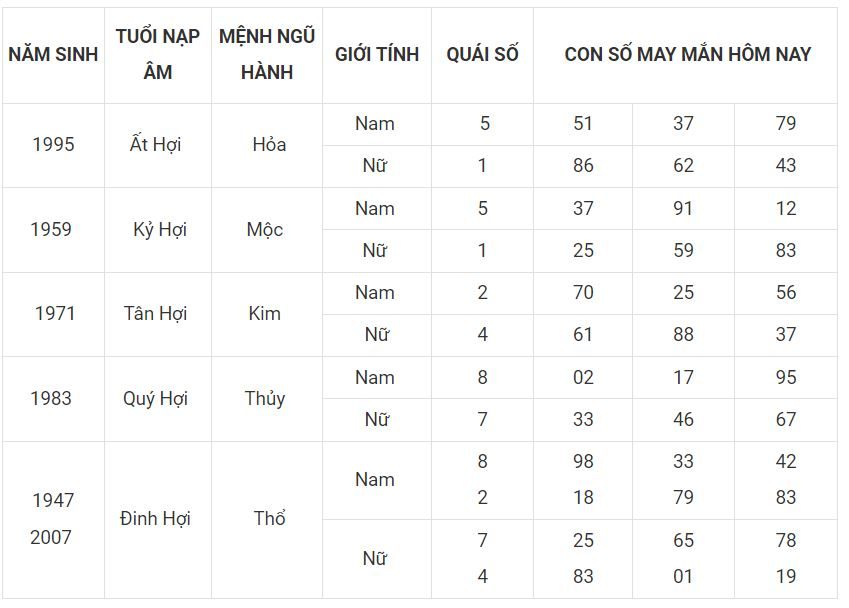 - Sinh năm Ất Hợi 1995 – Lợn quá vãn (thuộc mệnh Hỏa trong Ngũ hành).