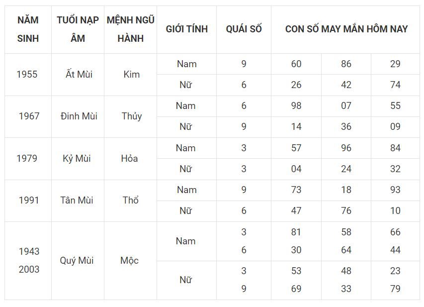 Tuổi Mùi – cầm tinh con dê trong 12 con Giáp được đánh giá là con vật đại diện cho người tốt bụng và nhân hậu. Họ có cuộc sống nhiều tình cảm, luôn sẵn sàng giúp đỡ mọi người xung quanh. Đặc biệt hơn, người tuổi Mùi rất thông minh với tài trí hơn người, họ có tài nhìn xa trông rộng và khả năng phân tích vấn đề rất nhạy bén. Cho dù là tuổi gì thì tất cả chúng ta cũng cần đến nhiều may mắn, cùng xem son số may mắn hôm nay 7-4-2023 của tuổi Mùi ứng với số nào?