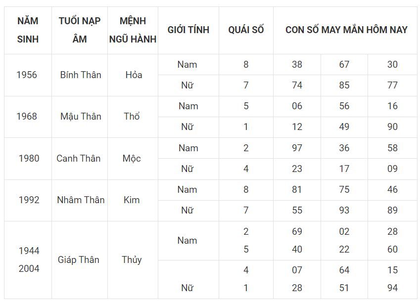- Sinh năm Mậu Thân 1968 – Khỉ ăn quả (thuộc mệnh Thổ trong Ngũ hành).