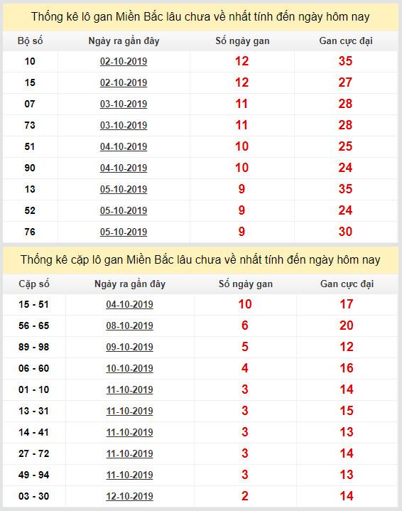 Dựa bảng thống kê lô gan miền bắc 15-10-2019 này sẽ giúp anh em có thể tham khảo những con lô gan lâu ngày chưa về.