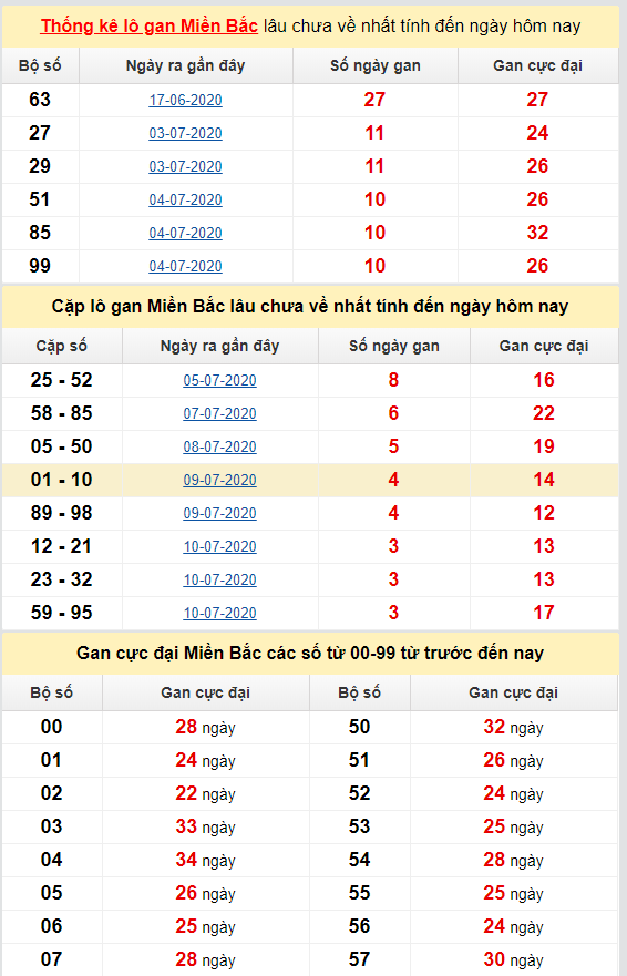 Thống kê tần suất lô gan cực đại hôm nay