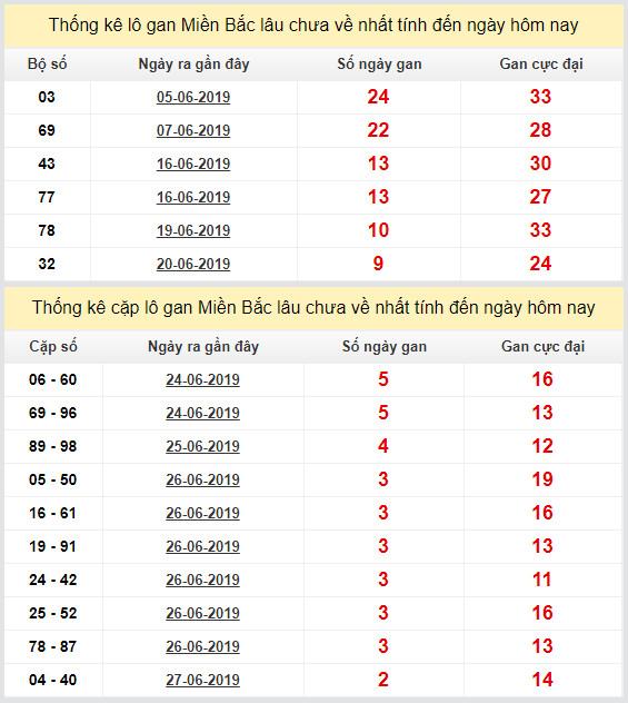 Dựa bảng thống kê lô gan miền bắc 30-6-2019 này sẽ giúp anh em có thể tham khảo những con lô gan lâu ngày chưa về.