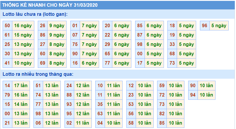Bảng thống kê kết quả xsmb ngày 31-3