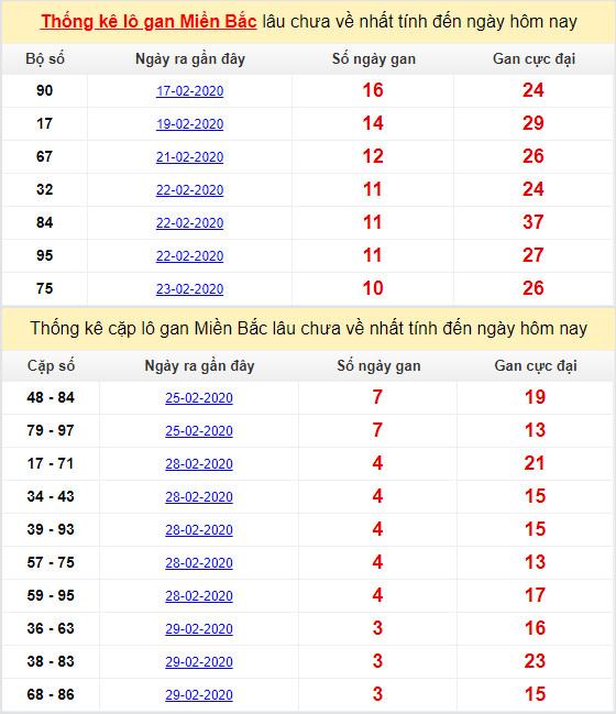Thống kê tần suất lô gan cực đại hôm nay