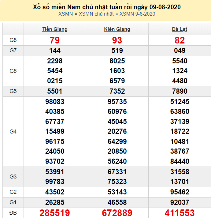 – Thống kê kết quả XSTG mở thưởng hôm nay