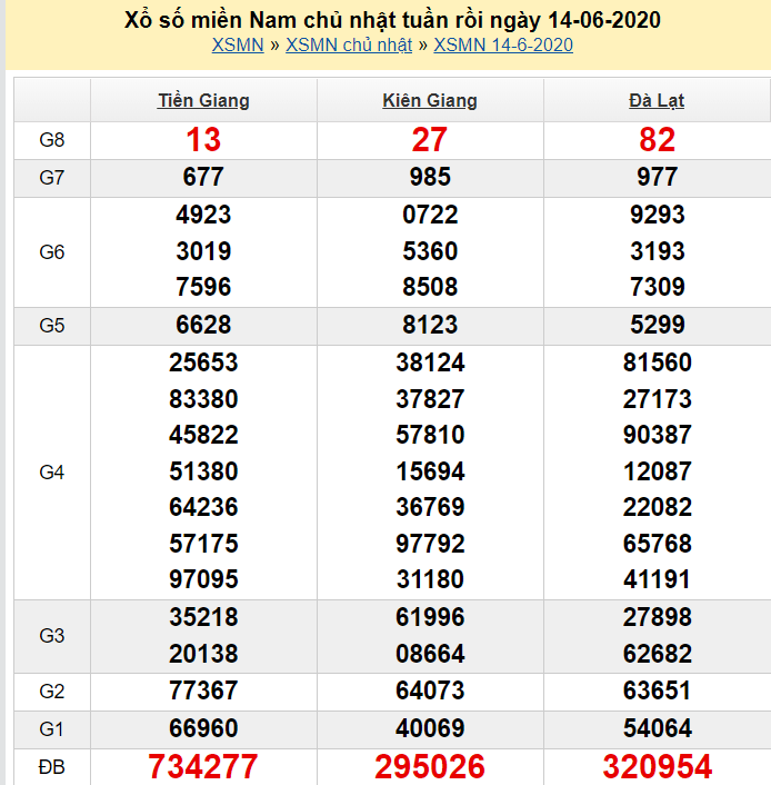 – Thống kê kết quả XSTG mở thưởng hôm nay