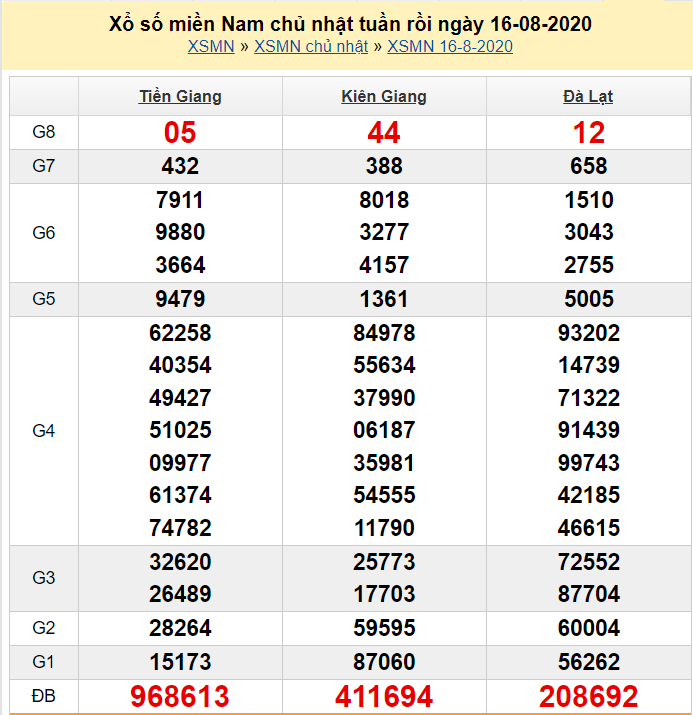 – Thống kê kết quả XSTG mở thưởng hôm nay