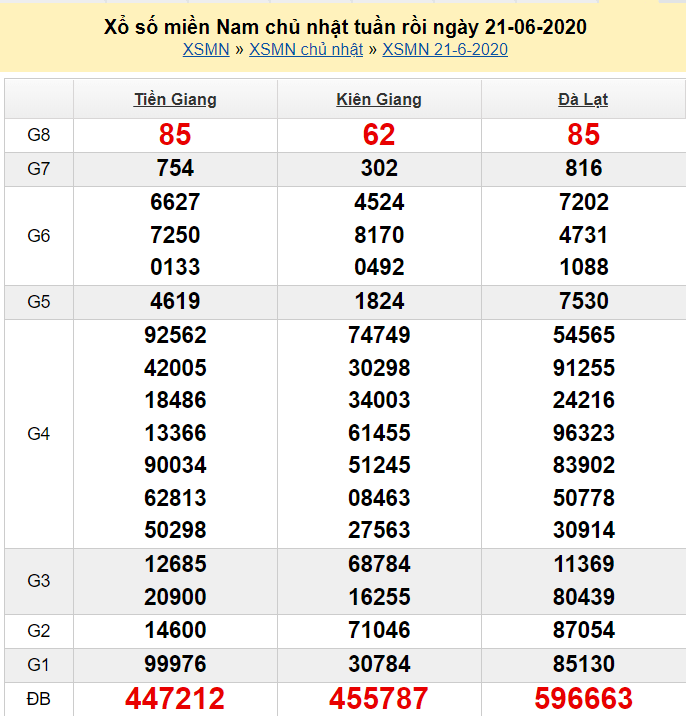 – Thống kê kết quả XSTG mở thưởng hôm nay
