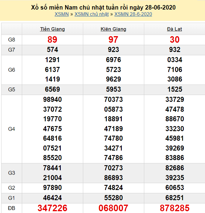 – Thống kê kết quả XSTG mở thưởng hôm nay