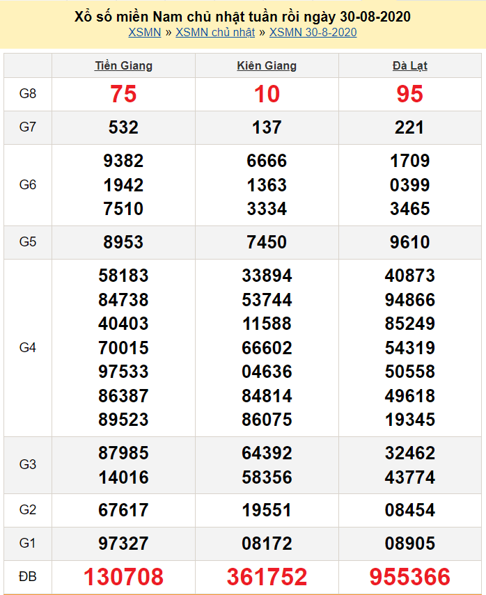 – Thống kê kết quả XSTG mở thưởng hôm nay