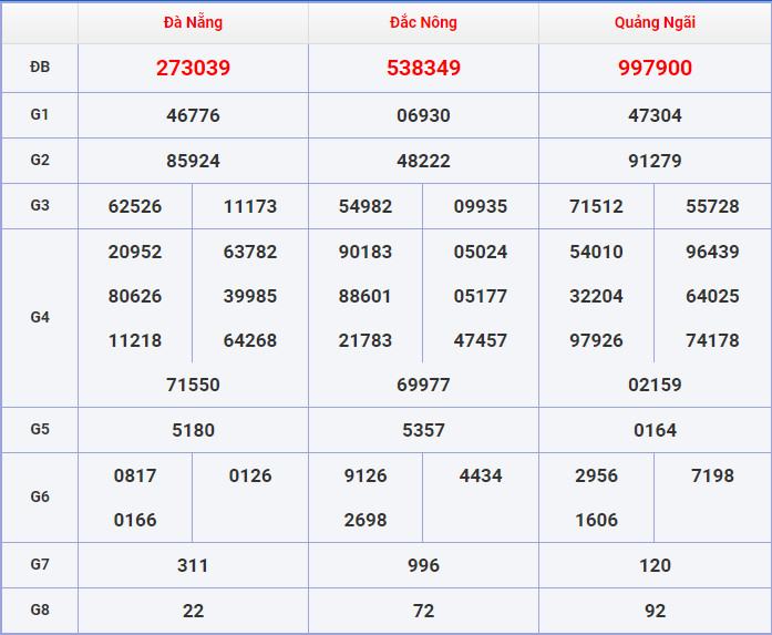 – Thống kê kết quả XSDNG mở thưởng hôm nay