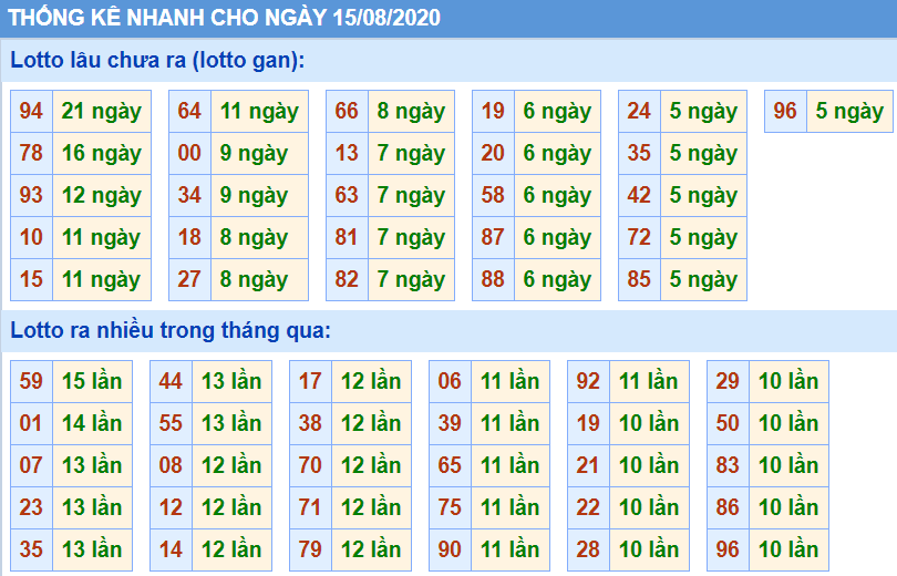 Thống kê tần suất lô gan cực đại hôm nay